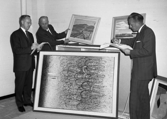 The collection itself is an excellent sample of Canadian Art that not only includes work from some of Canada’s most well-known artists, but also covers many major Canadian Art movements and styles, from the Group of Seven’s search for a distinctly “Canadian” art style in the 1920’s right up to the rise of modernism and abstraction in the 1950’s and 1960’s. Donald’s presence in the Canadian arts and culture scene undoubtedly played a role in shaping this collection. He founded the National Film Society of Canada (now the Canadian Film Institute), co-edited the Canadian Art Journal, and was Associate Director of the National Gallery of Canada. He also worked as the Director of Talks and Public Affairs for the Canadian Radio Commission (now CBC Radio) and co-founded both the Ottawa Times and National Film Board. Additionally, he authored various written works during his lifetime, including 12 books and over 120 journal articles, largely focused on Canadian art and design. Donald understood the importance of enriching one’s life with art and truly felt it was important to keep these works in Lethbridge, so that future generations could have an excellent example of Canadian art history right at home.